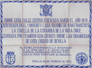 Inicio Obras 09105. Panel conmemorativo. Antigua capilla de la Hermandad de la Vera Cruz. Sevilla. 09105. Panel conmemorativo. Antigua capilla de la Hermandad de la Vera Cruz. Sevilla. Código09105Tipo de obraPanel de azulejosFunciónConmemorativaTipo de panelPictóricoAutorZabala García, PatricioTallerCerámica Santa Ana. FábricaFuente de autoríaFirmadoCronología1993Fuente de la cronologíaDatado en la obraDimensiones0,60 m. x 0,45 m. (aprox.)Pieza datadaSi Lugar exacto donde se encuentraFachada de edificio. Calle Granada, 1PoblaciónSevillaProvinciaSevillaPaísEspañaSituada en elExteriorLugar de producciónSevillaZona de producciónAndalucíaTécnica decorativaAzulejo plano pintadoTema de decoración o temáticaEpigráficaHeráldica Autor de las fotografíasManuel Pablo Rodríguez Rodríguez. Febrero 2026