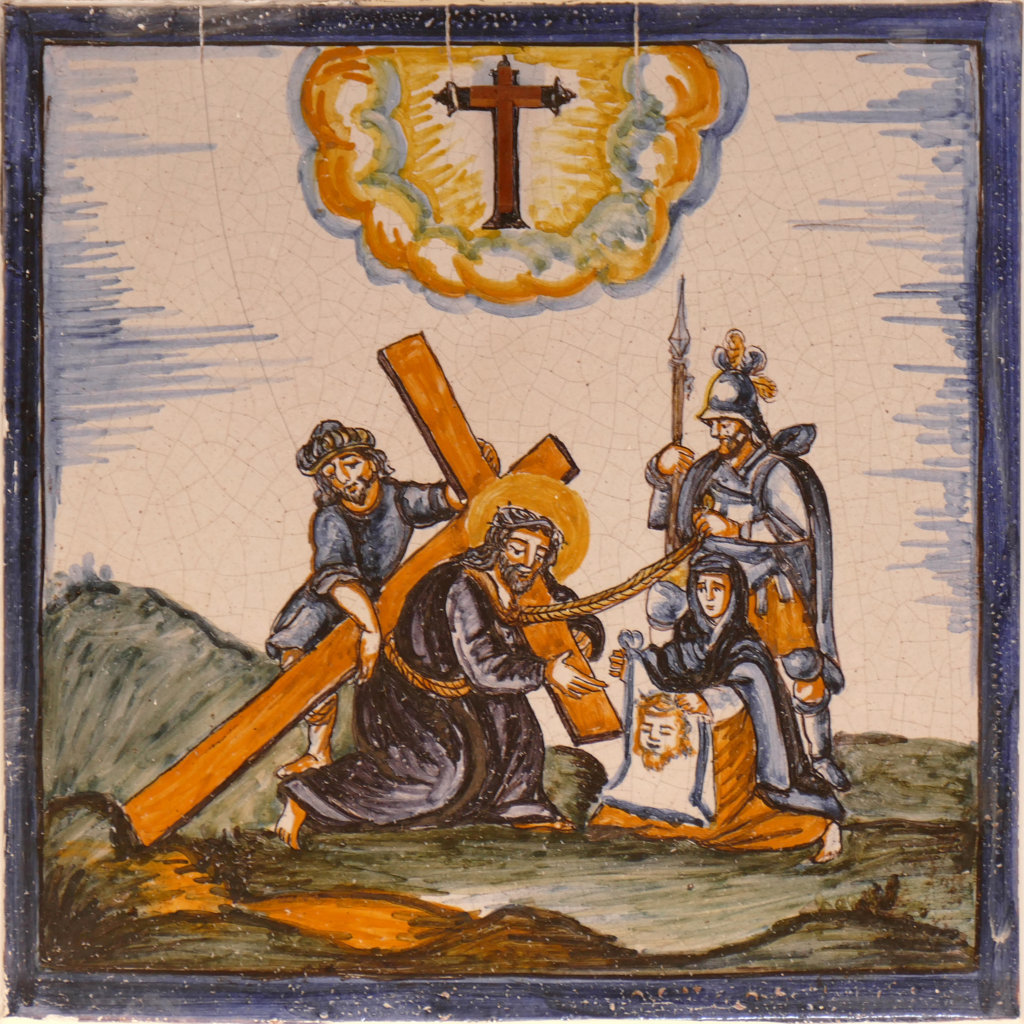 Inicio Obras 09118. Retablo cerámico. Escena de Vía Crucis. Sexta estación. Gelves. Sevilla. 09118. Retablo cerámico. Escena de Vía Crucis. Sexta estación. Gelves. Sevilla. Código09118Tipo de obraRetablo cerámicoVía CrucisFunciónDevocionalTipo de panelPictóricoAutorAragón Cuesta, JuanTallerÁguilas 25Fuente de autoríaFirmadoCronologíaDécada de 1990Fuente de la cronologíaEstimaciónDimensiones0,25 m. x 0,25 m. (aprox.)Pieza datadaNo Lugar exacto donde se encuentraOratorio en propiedad particularPoblaciónGelvesProvinciaSevillaPaísEspañaSituada en elInteriorLugar de producciónSevillaZona de producciónAndalucíaTécnica decorativaAzulejo plano pintadoTema de decoración o temáticaReligiosa - pasionistaEscenaEncuentro de Jesús con la VerónicaPersonajes representadosJesús de NazaretSimón de CireneSoldado romanoVerónica, Santa ConjuntoGelves. Oratorio particular. Vía Crucis. Autor de las fotografíasManuel Pablo Rodríguez Rodríguez. Febrero 2026