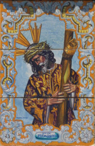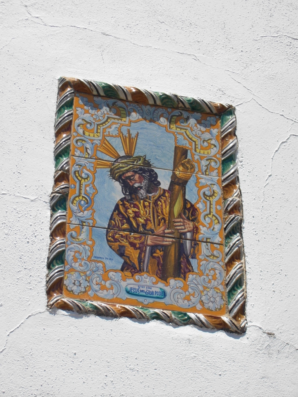 Inicio Obras 09128. Retablo cerámico. Jesús del Gran Poder. Higuera de la Sierra. Huelva. 09128. Retablo cerámico. Jesús del Gran Poder. Higuera de la Sierra. Huelva. Código09128Tipo de obraRetablo cerámicoFunciónDevocionalTipo de panelPictóricoAutorDesconocidoTallerCerámica Santa Ana. FábricaFuente de autoríaFirmadoCronologíaDécada de 1950Fuente de la cronologíaEstimaciónDimensiones0,28 m. x 0,42 m. (aprox.)Pieza datadaNo Lugar exacto donde se encuentraFachada de domicilio particular. Avenida de la Cabalgata, 14PoblaciónHiguera de la SierraProvinciaHuelvaPaísEspañaSituada en elExteriorLugar de producciónSevillaZona de producciónAndalucíaTécnica decorativaAzulejo plano pintadoTema de decoración o temáticaReligiosa - pasionistaEscenaJesús con la cruz al hombroPersonajes representadosJesús de NazaretAdvocacionesGran PoderGran Poder (Sevilla) Autor de las fotografíasManuel Pablo Rodríguez Rodríguez. Junio 2011