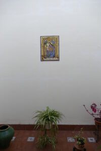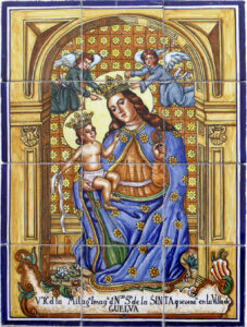 Inicio Obras 09129. Retablo cerámico. Virgen de la Cinta. Gelves. Sevilla. 09129. Retablo cerámico. Virgen de la Cinta. Gelves. Sevilla. Código09129Tipo de obraRetablo cerámicoFunciónDevocionalTipo de panelPictóricoAutorSánchez Palacios, JuanFuente de autoríaFirmadoCronologíaDécada de 1990Fuente de la cronologíaEstimaciónDimensiones0,45 m. x 0,60 m. (aprox.)Pieza datadaNo Lugar exacto donde se encuentraPropiedad particularPoblaciónGelvesProvinciaSevillaPaísEspañaSituada en elInteriorLugar de producciónSevillaZona de producciónAndalucíaTécnica decorativaAzulejo plano pintadoTema de decoración o temáticaReligiosa - letíficaEscenaVirgen con el NiñoPersonajes representadosÁngelJesús de Nazaret NiñoVirgen MaríaAdvocacionesCintaCinta (Huelva) Autor de las fotografíasManuel Pablo Rodríguez Rodríguez. Febrero 2026
