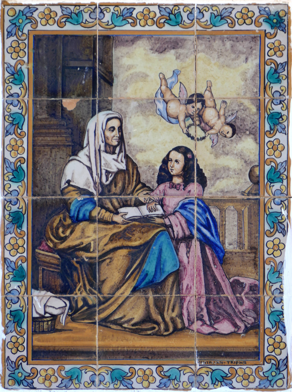 08582. Retablo cerámico. Santa Ana enseñando a leer a la Virgen. Guadalema de los Quintero. Utrera. Sevilla. CronologíaDécada de 1950