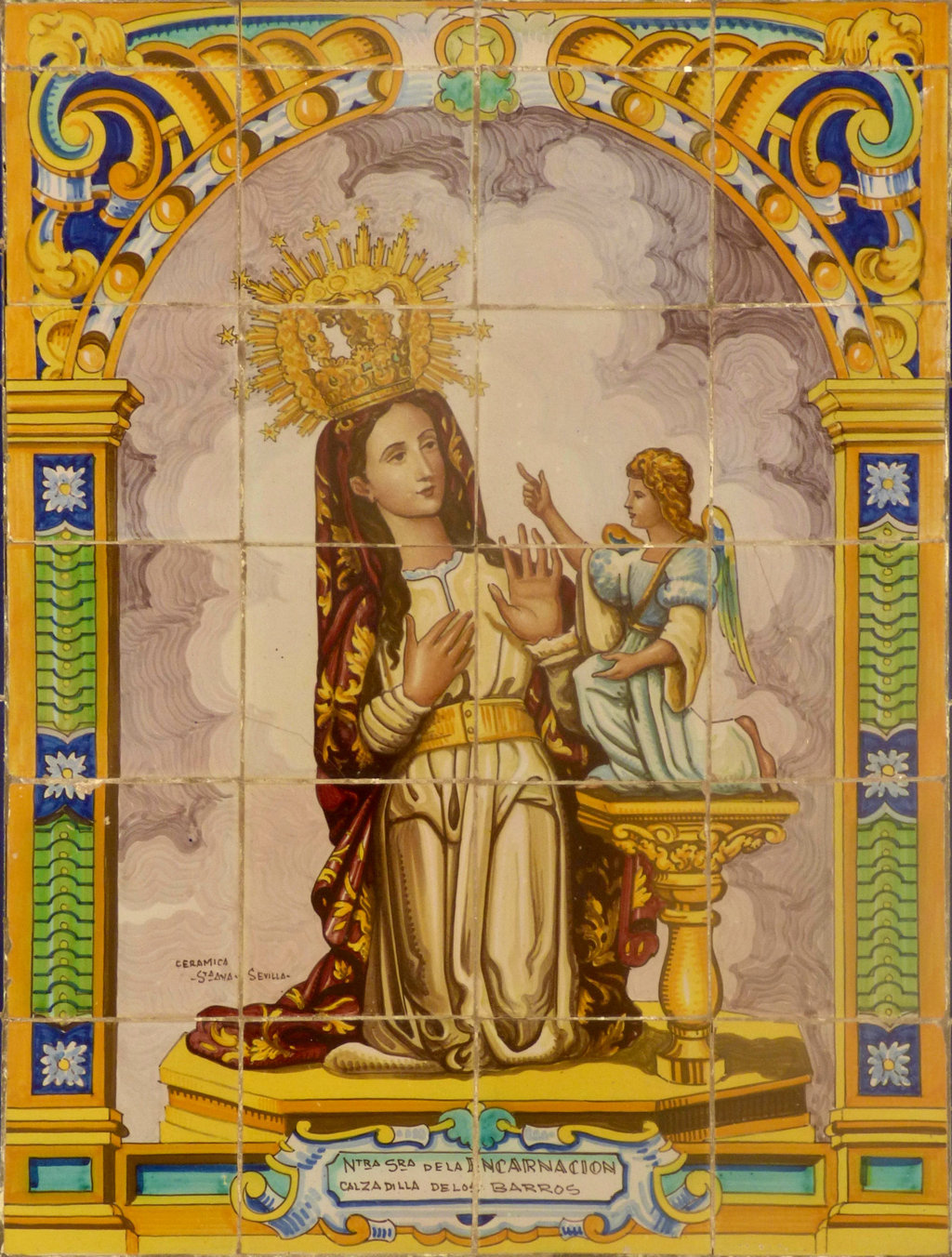 08641. Retablo cerámico. Virgen de la Encarnación. Calzadilla de los Barros. Badajoz. CronologíaDécada de 1950
