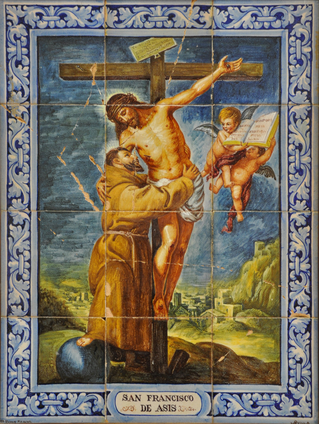 00525. Retablo cerámico. San Francisco de Asís abrazando a Cristo crucificado. Hospital de la Cruz Roja. Sevilla. (Desaparecido) CronologíaDécada de 1950